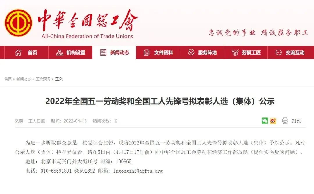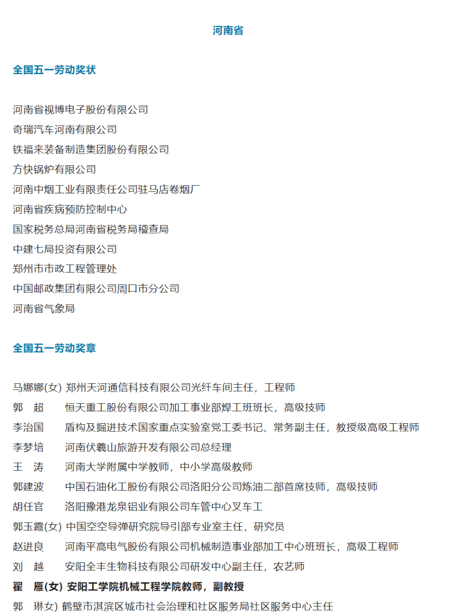 4月13日,中华全国总工会发布了2022年全国五一劳动奖和全国工人先锋号拟表彰人选(集体)公示名单。其中,公司教师、副教授翟雁入选。